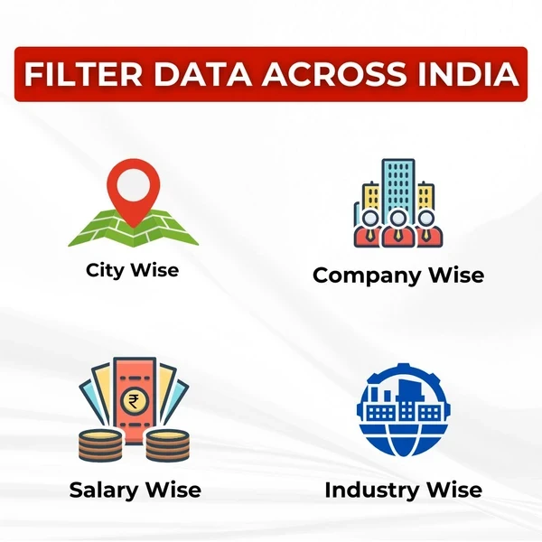 Our database includes detailed information like Name, Phone Number, Email, City, Date of Birth, Industry, Company Name, Salary Range, Work Experience, Education, and more.