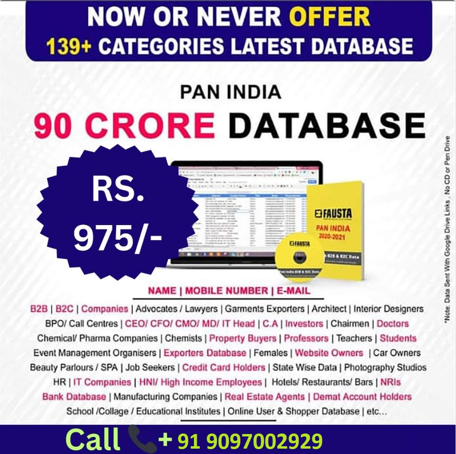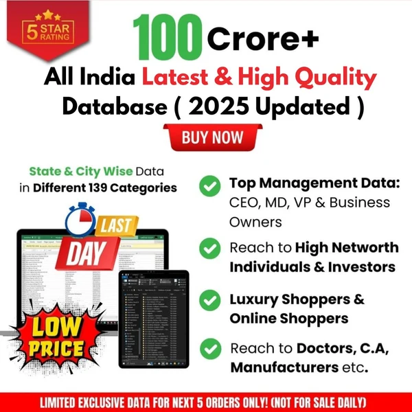 ✅ इससे पहले कि आपके प्रतिस्पर्धियों इस डेटाबेस को खरीदें, आप एक कदम आगे रहें और अपना व्यवसाय बढ़ाएं, इस डेटाबेस को खरीदें।