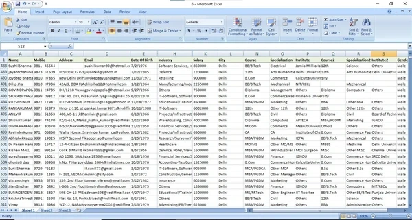 This is recent Data of contact information such as Name, Address, Email ID, Phone, City, State, Pincode & more as available.